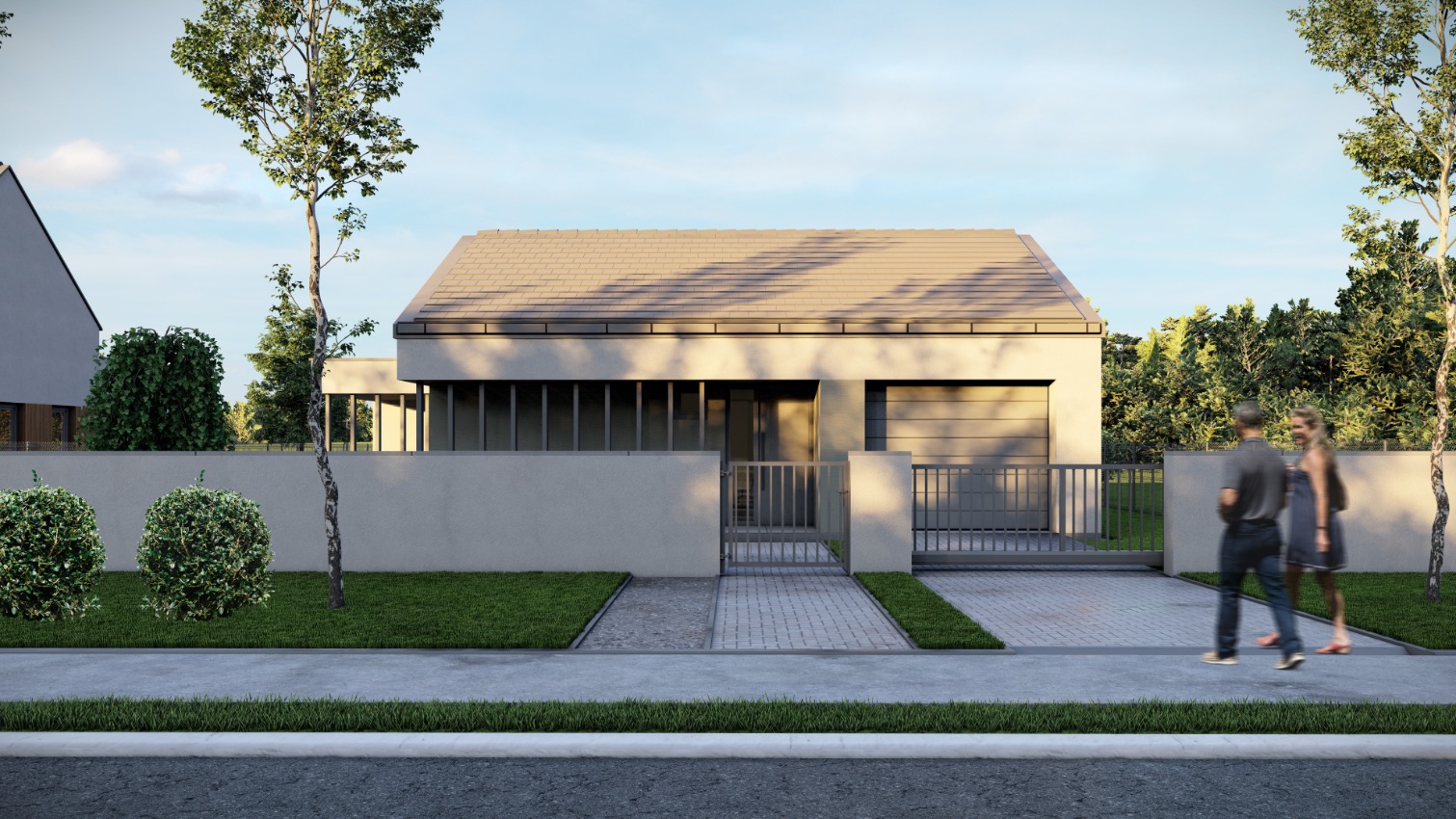A megadott értékesítési ár a kerítés, térkövezés, parkosítás, esővíz szikkasztás díját nem tartalmazza. A homlokzat dörzsölt színvakolat, a látvány képeken szereplő falburkolat felár ellenében kérhető.