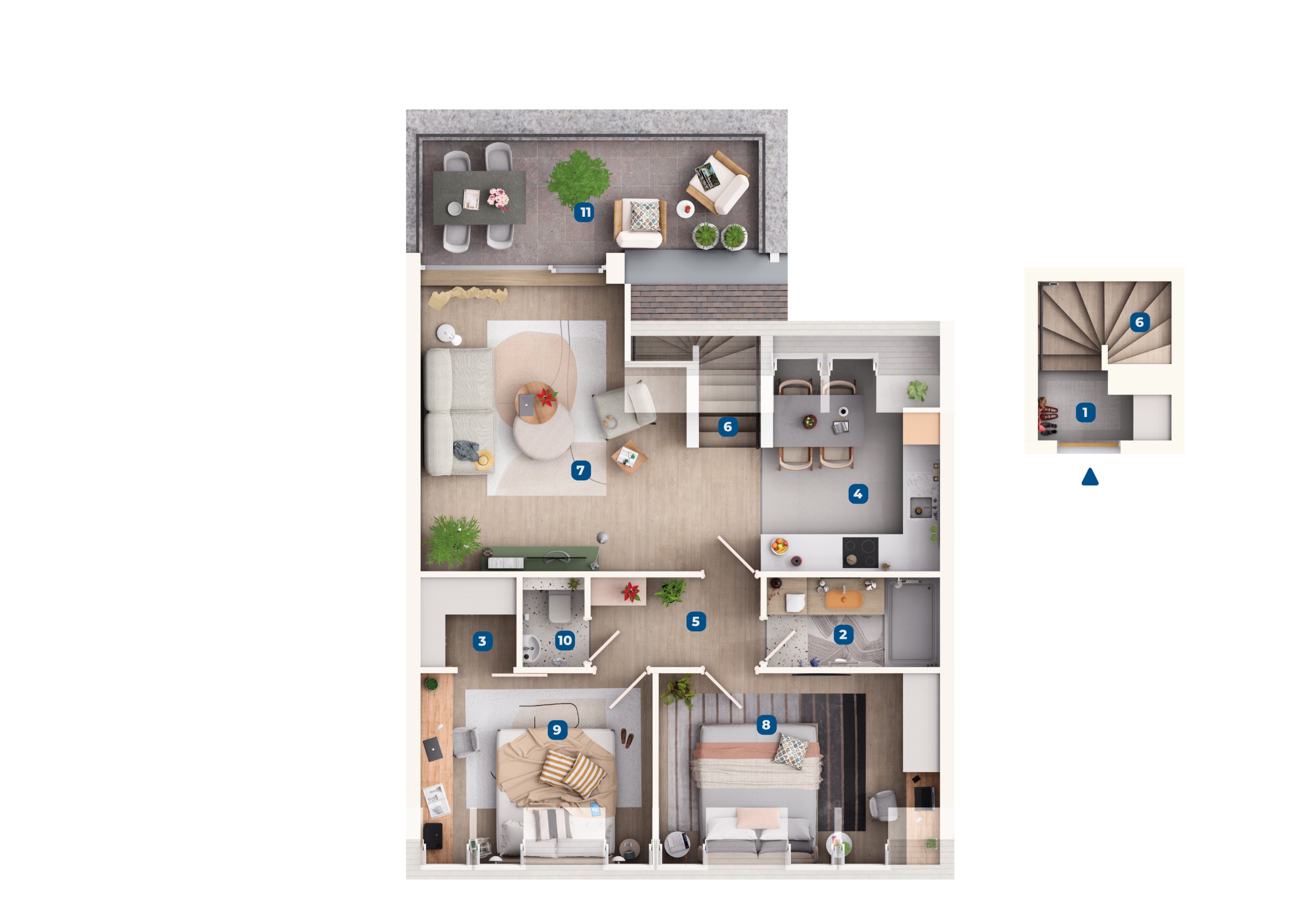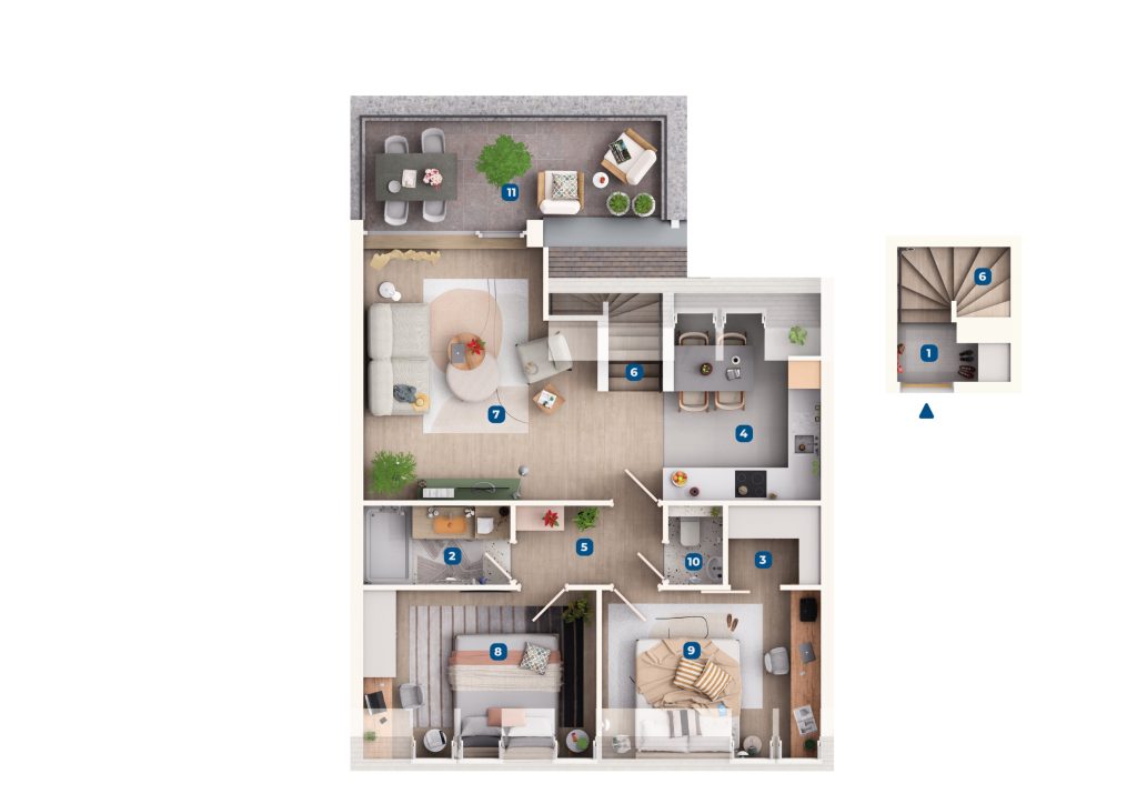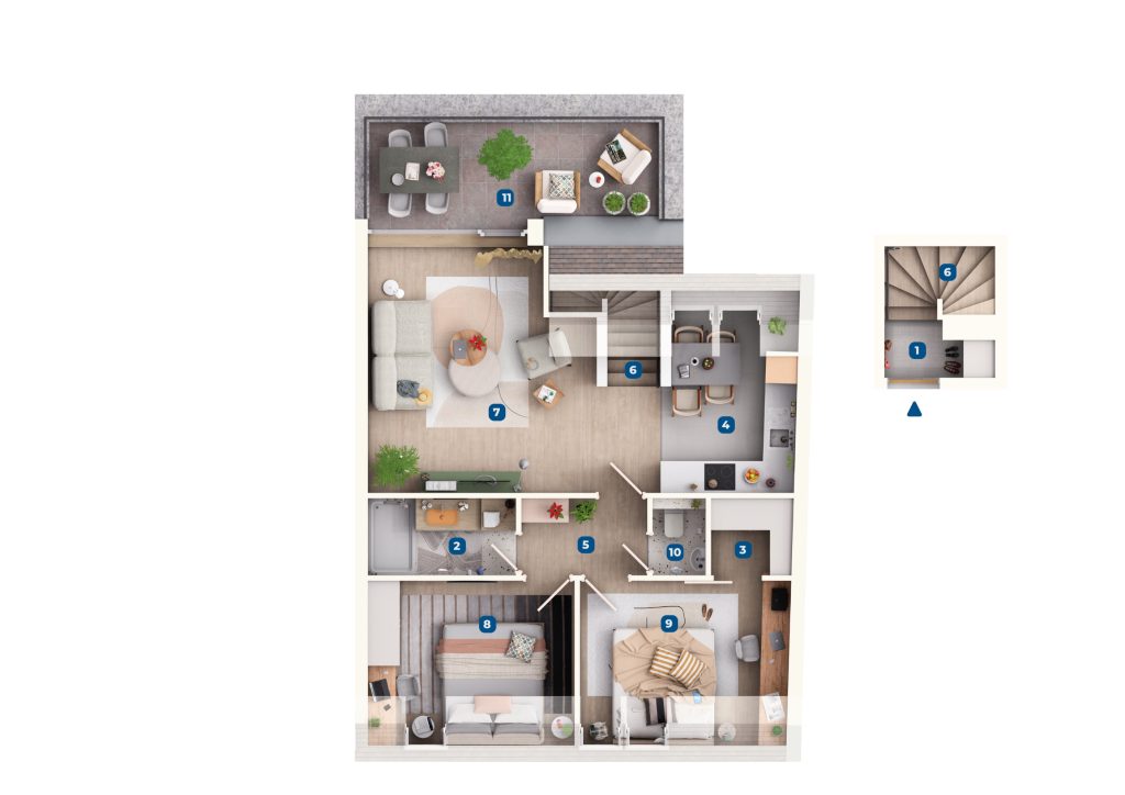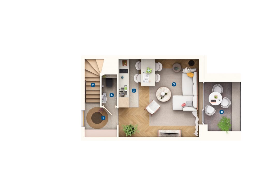 A lakásokat emelt szerkezetkész, fűtéskész állapotban adjuk át, ugyanakkor igény esetén kulcsrakész befejezést is vállalunk.